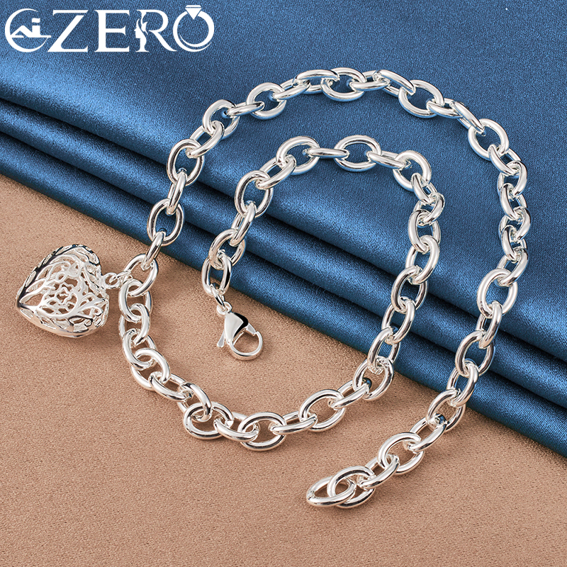 ALIZERO 24K Gold Necklaces 925 Sterling Silver Hollow Heart Pendant Necklace For Women Wedding Party Charms Jewelry Gift Silver-45cm 18inches – Sumsfashion